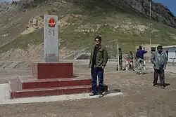 The China–Kyrgyzstan border is 1,063 km (661 mi)[1] in length and runs from the tripoint with Kazakhstan following a roughly south-west line across various mountain ridges and peaks of the Tian Shan range down to the tripoint with Tajikistan.[2] The border divides (from north to south/east to west) Issyk-Kul Region, Naryn Region and Osh Region in Kyrgyzstan from Aksu Prefecture (to the north and east) and Kizilsu Kyrgyz Autonomous Prefecture (to the south and west) in Xinjiang Uygur Autonomous Region, China.