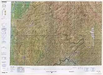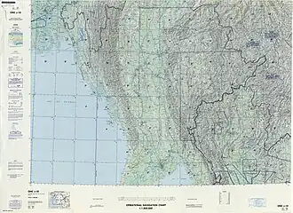 Historical maps of the border from west to east in the International Map of the World, Operational Navigation Chart and Tactical Pilotage Chart, late 20th century: