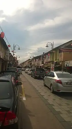 Kampung Cina (Jawi: کامڤوڠ چينا; Terengganuan: Kapong Cine; Chinese: 唐人坡; Pe̍h-ōe-jī: Tn̂g-lâng-pho), is a Chinatown located in Kuala Terengganu, Terengganu, Malaysia. Kampung Cina is located along Jalan Bandar (formerly known as Jalan Kampung Cina), in Kuala Terengganu city centre at the river mouth of Terengganu River that empties into the South China Sea. Kampung Cina literally means Chinese Village; it is also called Tn̂g-lâng-pho (唐人坡) or KT's Chinatown by local people. It is one of Southeast Asia's early Chinese settlements and contains stately ancestral homes, temples, townhouses, and business establishments. The town is small but has colourful shophouses along both sides of the road that carries traditional flavour.