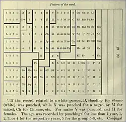 When after the Treaty of Paris (1898), the U.S. conducted its first census of Puerto Rico, the Chinese population was large enough to require a mention in the document on how to punch the census card: "If the record related to a white person, B, standing for blanco (white) was punched, while N was punched for a negro, or M for Mixed, Ch for Chinese, etc."[5]