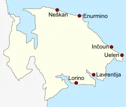 Also known as Нунама/Nunama (Yupik) and Нунъэмун/Nunʺėmun (Chukchi),[20][18] this locality was populated solely by Chukchi until 1958,[21] having been previously a Yupik village in the 18th century as evidenced by old ruins and archeological finds.[22] In 1958, following the closure of Naukan, the village became a mixed Chukchi/Yupik settlement until 1970,[18] when the population were moved to Lorino, Lavrentiya, and Uelen.[21] |
