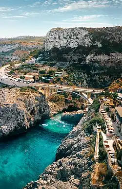 - ^ Staff Corte del Salento (27 August 2016). "Il fiordo del Ciolo: il ponte sospeso tra cielo e mare" [The Ciolo's fjord: a bridge between the sea and the sky]. www.cortedelsalento.net (in Italian). Archived from the original on 30 September 2020.