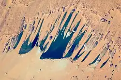 - ^ Bristow, Charlie S.; Drake, Nick; Armitage, Simon (1 April 2009). "Deflation in the dustiest place on Earth: The Bodélé Depression, Chad". Geomorphology. Contemporary research in aeolian geomorphology. 105 (1): 50–58. Bibcode:2009Geomo.105...50B. doi:10.1016/j.geomorph.2007.12.014. ISSN 0169-555X.