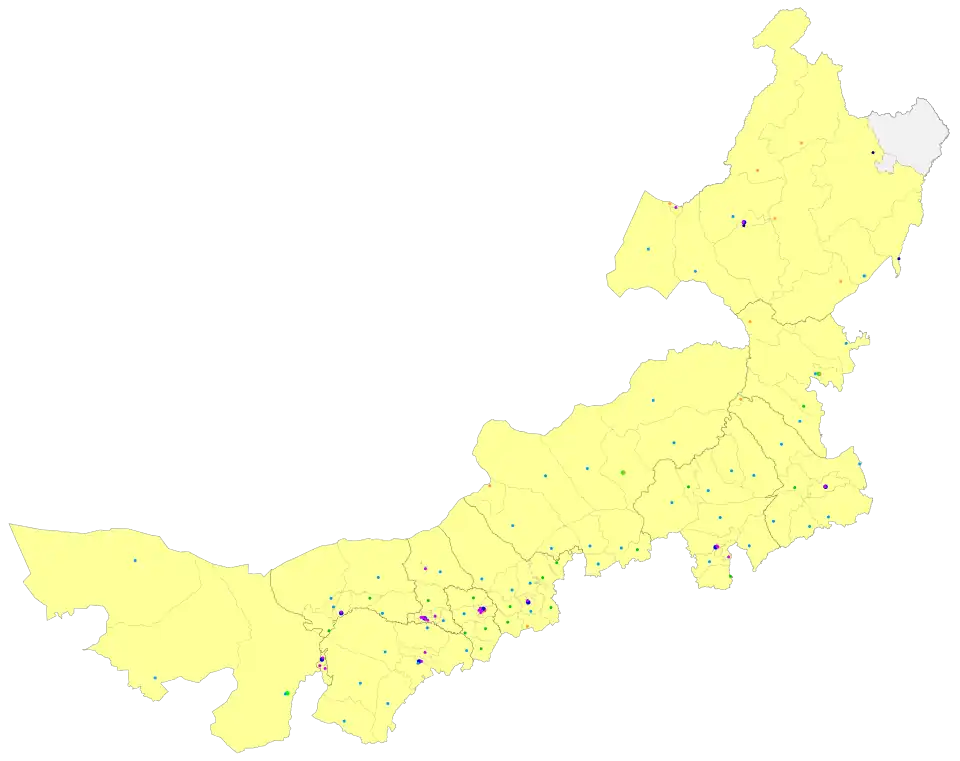 | Divisions - Prefecture-level - County-level - Township- level | 12 prefectures 103 counties 1025 towns and subdistricts |