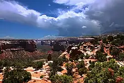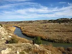 Thirty days later on February 28, 1861, outgoing U.S. President James Buchanan signed an Act of Congress organizing the free Territory of Colorado.[2] The original boundaries of Colorado remain unchanged except for government survey amendments. In 1776, Spanish priest Silvestre Vélez de Escalante recorded that Native Americans in the area knew the river as el Rio Colorado for the red-brown silt that the river carried from the mountains.[23] In 1859, a U.S. Army topographic expedition led by Captain John Macomb located the confluence of the Green River with the Grand River in what is now Canyonlands National Park in Utah.[24] The Macomb party designated the confluence as the source of the Colorado River.