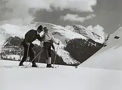 Three 10th Mountain Division skitroopers above Camp Hale in February 1944