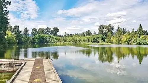 It forms the headwaters of the Como watershed and is an urban fishing and recreation area in the city of Coquitlam as well as the Lower Mainland.