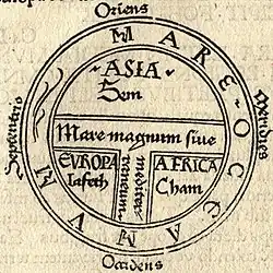 Medieval T and O map showing the three continents as domains of the sons of Noah—Asia to Sem (Shem), Europe to Iafeth (Japheth), and Africa to Cham (Ham).