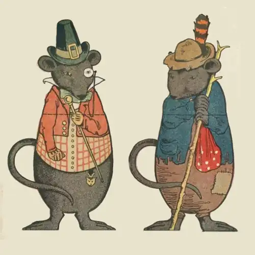 An illustration of "The Town Mouse and Country Mouse" of Aesop's Fables, an early parable of urban and rural equality/divide