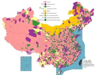 | County-level division 县级行政区 Xiàn Jí Xíngzhèngqū | |