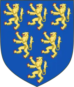 Finally, the victory gained by Geoffrey Martel (21 June 1040 – 14 November 1060), the son and successor of Fulk, over Theobald III of Blois at Nouy (21 August 1044), assured to the Angevins the possession of the countship of Touraine. At the same time, continuing in this quarter also the work of his father (who in 1025 took prisoner Herbert Wakedog and only set him free on condition of his doing him homage), Geoffrey succeeded in reducing the countship of Maine to complete dependence on himself. During his father's life-time he had been beaten by Gervais de Château-du-Loir, bishop of Le Mans (1038), but later (1047 or 1048) succeeded in taking the latter prisoner, for which he was excommunicated by Pope Leo IX at the council of Reims (October 1049). He was a vigorous opponent of William the Bastard when the latter was still merely the duke of Normandy.[5] Despite concerted attacks from William and William's son Henry Beauclerc, he was able to force Maine to recognize his authority in 1051. He failed, however, in his attempts to revenge himself on William.[4]