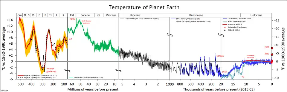 - ^ Scotese, Christopher R.; Song, Haijun; Mills, Benjamin J. W.; Van der Meer, Douwe G. (April 2021). "Phanerozoic paleotemperatures: The earth's changing climate during the last 540 million years". Earth-Science Reviews. 215: 103503. Bibcode:2021ESRv..21503503S. doi:10.1016/j.earscirev.2021.103503. S2CID 233579194. Retrieved 17 March 2023.