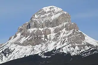 Crowsnest Mountain is a mountain in the southern Canadian Rockies of southwestern Alberta, Canada. It can be seen from Alberta Highway 3 west of the town of Coleman in the Crowsnest Pass. The mountain was originally named by the Ktunaxa First Nations due to ravens nesting in the area.[1] The scrambling route on the north side was first ascended in 1915.[1]