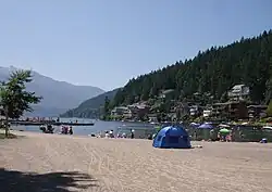 Cultus Lake is a lake, associated community and provincial park in the Fraser Valley region of British Columbia, Canada. It is the source of the Sweltzer River. Cultus Lake is located 11 kilometres (6.8 mi) south of the Chilliwack River, near the city of Chilliwack and approximately 80 kilometres (50 mi) east of Vancouver.[2] In 1950, Cultus Lake became a provincial park of British Columbia. Cultus Lake covers an area of 656 hectares, evenly on either side of the lake. At one time the lake had a sawmill and booming ground until it became a provincial park in the 1950s.
