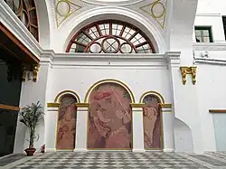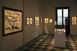 The building's reopening marked the start of its inaugural art exhibition, Ghare Baire | The World, The Home and Beyond: 18th-20th Century Art in Bengal, which opened on 12 January 2020.[3][15] The exhibition was commissioned by India's Ministry of Culture, and was organised and curated by DAG Museums—a private art curation and education organisation—in collaboration with the National Gallery of Modern Art (NGMA).[3][15] According to DAG, the exhibition was "the first comprehensive showcasing of the art and artists of Bengal".[3] Entry to the exhibition is free.[15] The museum and exhibition were briefly closed due to the Coronavirus Disease 2019 (COVID-19) pandemic.[15] In February 2021, two works of Abdur Rahman Chughtai, considered Pakistan's national artist, were displayed for the first time at the Currency Building as part of the Ghare Baire exhibit.[29][30] In January 2021, the Currency Building also served as an event space for talks given as part of the Apeejay Kolkata Literary Festival 2021.[31]