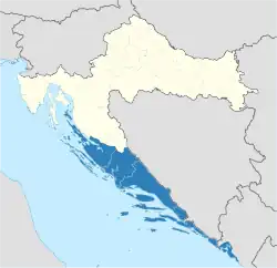 ^ The figures are an approximation based on statistical data for the four southernmost Croatian Counties (Zadar without Gračac, Šibenik-Knin, Split-Dalmatia, Dubrovnik-Neretva, Novalja, Rab and Lopar).[2][3] | |