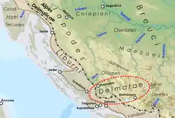 - ^ M.Zaninović, Ilirsko pleme Delmati, pp. 58, 83-84.