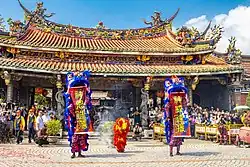 Although the history of the settlement likely preceded Dutch Formosa rule, its existence was first recorded as Pourompon (from the Basay language). This gave rise to the names Paronpon (Chinese: 巴浪泵; Pe̍h-ōe-jī: Pa-lông-pōng), Daronpon (大龍泵; Toā-lông-pōng)[1] and other variants, when the area came under Qing dynasty rule. The name was once again changed (大隆同; Toā-liông-tông) in 1802 (7th year of Jiaqing Emperor), by settlers from Tong'an District in Xiamen. It was during this period that the Dalongdong Baoan Temple was first constructed. The name finally settled in its present form (大龍峒) during the reign of the Daoguang Emperor (1820-1850) when further settlement occurred in the area.