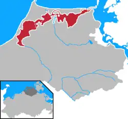 The Darss-Zingst Bodden Chain[1] (German: Darß-Zingster Boddenkette) is a waterbody on the Baltic Sea coast northeast of Rostock in Germany. It consists of a string of several lagoons or bodden arranged in an east–west direction that are separated from the open sea by the Fischland-Darß-Zingst peninsula. The surface area of these lagoons is 197 km2 and the average water depth is only about two metres.