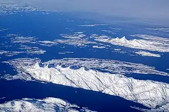 The mountain range consists of seven peaks on the southeastern half of the island. The mountains are (listed from northeast to southwest):[2]