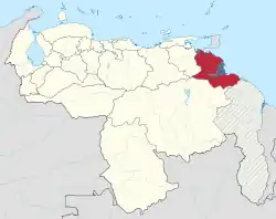 ![]() Location of the Delta Amacuro Federal Territory (red) in Venezuela. | |||||||||