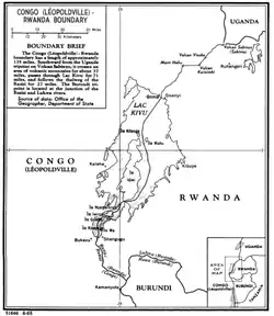 The border between the countries of Rwanda and the Democratic Republic of the Congo is 221 kilometers long.[1] Crossing Lake Kivu in its entirety through the Virunga Mountains down to Mount Karisimbi, it divides the cities of Goma/Gisenyi and Bukavu/Cyangugu. In 1885, Leopold II, King of the Belgians personally claimed the Congo Free State (later as the Belgian Congo), a vast territory in Central Africa, and it became his personal colony. The city of Léopoldville (present-day Kinshasa) was named in his honor. After the Berlin Conference led by the German chancellor Otto von Bismarck in Berlin, the German East Africa was a larger territory of Germany, and Kigali was later established as a German administrative center in 1907. During the First World War, the Belgian Congo led by the Force Publique invaded the German territory in East Africa that launched an offensive of Tabora in 1916 as the Germans were forced to surrender their territory to the Belgians. After the war, the League of Nations formalized the Belgian administration of Ruanda-Urundi through a "Class B" mandate in 1922. On 30 June 1960, after the Belgo-Congolese Round Table Conference in Brussels, the Congo finally achieved independence from Belgium. On 1 July 1962, with the Rwandan Revolution as well as the abolition of Kigeli V Ndahindurwa as Mwami of Rwanda had concluded, Rwanda also gained independence from Belgian rule as the "Republic of Rwanda". With Mobutu in power as the dictator of Zaire from 1971 until his overthrow in 1997 with the First Congo War, following the Rwandan genocide that has providing refuge and support to Hutu militia and elements of the defeated Rwandan army who had participated in the genocide. In October 1996, Laurent Kabila's AFDL, with support from Rwanda, launched an offensive in eastern Zaire against the Mobutu dictatorship. In 1997, as they steadily gained ground, capturing key towns and advancing towards the capital which later forced Mobutu to flee on 17 May by heading for exile in Morocco where he later died in September that same year.[2][3]