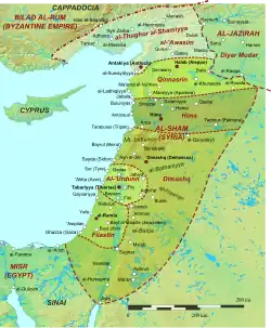 According to archaeologist Gideon Avni, archaeological surveys show that most Christian settlements and sites preserved their identity up to the crusader period, supplemented by the numerosity of churches and monasteries all over Palestine.[73] The early Muslim population, on the other hand, was confined to the Umayyad palaces in the Jordan Valley and around the Sea of Galilee, the ribat fortresses along the coast and the farms of the Naqab desert. Thus, conversion to Islam only gained real momentum in Palestine after Saladin's conquest of Jerusalem in 1187 and the expulsion of Franks.[73] Arabic gradually replaced Palestinian Aramaic and largely by the 9th century, while Islamization was only finalized in the Mamluk period.[74]
