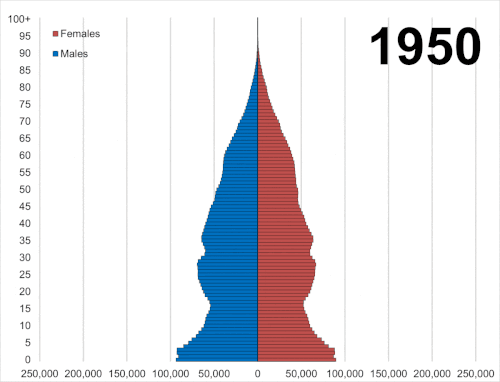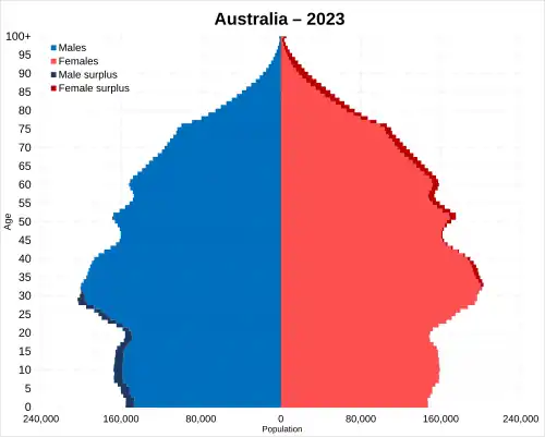 25. ^ Australian Bureau of Statistics (5 August 2008). "3105.0.65.001 - Australian Historical Population Statistics, 2008 - 4. Population Age-Sex Structure - 4.1 Population, age and sex, Australia 30 June, 1901 onwards".