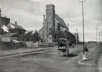 With the growth of the community, many sought to establish a Catholic church in the city which would offer mass in the Polish language. However the Diocese of Springfield did not move to establish such a parish until Rev. A. N. Dynia, a priest from Poland who had been defrocked, had begun to organize such a church there himself.[104][107] Indeed the independent Dynia would continue this pattern going westward, similarly unofficially initiating the creation of other Polish parishes as he went from town to town, only to be shunned by each respective Diocese.[108][109][110] After Dynia was "driven from the city", the Bishop appointed Father H. Chalupka of Chicopee to attend to this would-be parish, and on September 26, 1896, Rev. Anthony M. Sikorski became the first resident priest.[104] In 1901 a building designed by Holyoke's George P. B. Alderman was built and paid for by the parishioners who sold it to the Diocese at a token price, by 1902 the New York Tribune identified their community synonymous with Mater Dolorosa.[110] An influential member of the Polish community in the early 20th century was John Zielinski, who first arrived in Holyoke in 1912 to serve as the organist and choir director of Mater Dolorosa and was subsequently vice-president of the Polish Roman Catholic Union of America at one time, instrumental in the work of adjusting to American culture while keeping traditions of the Old World.[26]: 123, 126 [111][23]