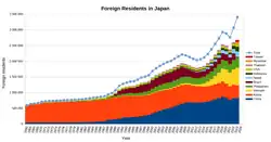 99. ^ "Japan's Foreign Population Climbs to All-Time High". nippon.com. March 29, 2016. Archived from the original on February 9, 2020. Retrieved December 26, 2019.
