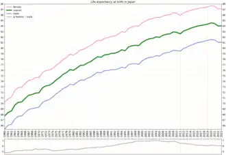 56. ^ "Life expectancy at birth, total - Japan". World Bank Group.