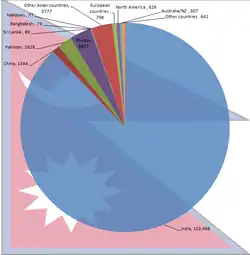 In the 2001 census, approximately 6,000 Nepali were living in the UK.[34] According to latest figure from Office for National Statistics estimates that 51,000 Nepal-born people are currently resident in the UK.[35] There has been increasing interest in the opportunities offered in the UK by the Nepali, especially education. Between the years of 2001 to 2006, there were 7,500 applications for student visas.[34]
