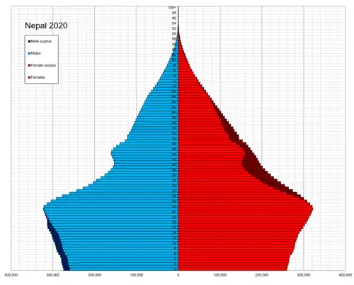 ![]() Population pyramid of Nepal in 2020 | |