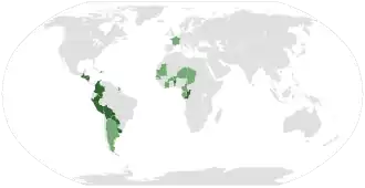 A department (French: département, Spanish: departamento) is an administrative or political division in several countries. Departments are the first-level divisions of 11 countries, nine in the Americas and two in Africa. An additional 10 countries use departments as second-level divisions, eight in Africa, and one each in the Americas and Europe.[1]