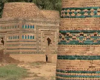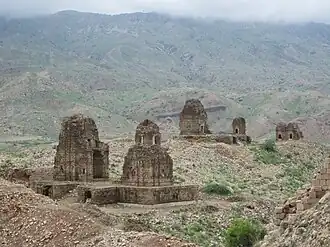 ![]() ![]() Top: Hindu temple ruins at Kafir Kot Bottom: Lal Marah Tombs | |