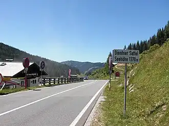 The Dienten Saddle (German: Dientner Sattel) is a mountain col at a height of 1,342 metres (4,403 ft)[1] in the Austrian state of Salzburg. The pass is open all-year round and traversed by the Hochkönig Road (B 164) that links Bischofshofen in the east with Saalfelden in the west. Between these two places there is also the Filzen Saddle.