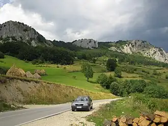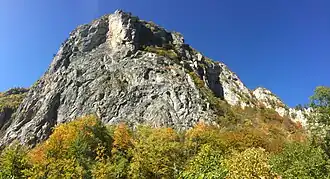 The Dinaric Karst region is built mostly of Mesozoic limestone and dolomite deposited on top of a huge Bahama-type carbonate platform,[6] while a few kilometers thick carbonate successions have been deformed during the Alpine orogenesis.[7] The main tectonic phase of the Alpine orogenesis in the Dinaric Karst region took place in the Cenozoic Era (Paleogene) as a result of the Adriatic microplate (Adria) collision with the Serbo-Macedonian and Rhodope Massifs,[8] and the process is still active.[4] The Mesozoic limestone forms a very distinctive region of the Balkans, notable for features such as the Karst Plateau, which has given its name to all such terrains of limestone eroded by groundwater. The Dinarides are known for being composed of karst – limestone rocks – as is Dinara, the mountain for which they were named.[5] The Quaternary ice ages had relatively little direct geologic influence on the Balkans. No permanent ice caps existed, and there is little evidence of extensive glaciation. Only the highest summits of Durmitor, Orjen and Prenj have glacial valleys and moraines as low as 600 m (1,969 ft). However, in the Accursed Mountains (Serbo-Croatian: Prokletije), a range on the northern Albanian border that runs east to west (thus breaking the general geographic trend of the Dinaric system), there is evidence of major glaciation. One geological feature of great importance to the present-day landscape of the Dinarides must be considered in more detail: that of the limestone mountains, often with their attendant faulting. They are hard and slow to erode, and often persist as steep jagged escarpments, through which steep-sided gorges and canyons are cleft by the rivers draining the higher slopes.