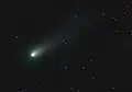 Around 1677, Edmond Halley observed a transit of Mercury across the Sun, leading him to realise that observations of the solar parallax of a planet (more ideally using the transit of Venus) could be used to trigonometrically determine the distances between Earth, Venus, and the Sun.[16] In 1705, Halley realised that repeated sightings of a comet were recording the same object, returning regularly once every 75–76 years. This was the first evidence that anything other than the planets orbited the Sun,[17] though this had been theorized about comets in the 1st century by Seneca.[18] Around 1704, the term "Solar System" first appeared in English.[19]
