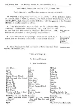 - ^ Supplement No. 2 to the Palestine Gazette No. 733, 28 October 1937, pp. 1001–1002. At first, the Galilee and Acre District was called the Galilee District.