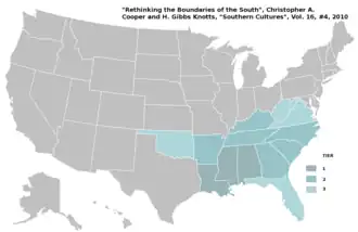 - ^ Christopher A. Cooper and H. Gibbs Knotts, Rethinking the Boundaries of the South. Southern Cultures, Volume 16, Number 4, Winter 2010, pp. 72–88