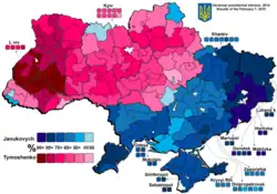 This strike was followed by a 1994 consultative referendum on various constitutional questions in Donetsk and Luhansk oblasts, held concurrently with the first parliamentary elections in independent Ukraine.[47] These questions included whether Russian should be declared an official language of Ukraine, whether Russian should be the language of administration in Donetsk and Luhansk oblasts, whether Ukraine should federalise, and whether Ukraine should have closer ties with the Commonwealth of Independent States.[48] Close to 90% of voters voted in favour of these propositions.[49] None of them were adopted since the vote was nationwide. Ukraine remained a unitary state, Ukrainian was retained as the sole official language, and the Donbas gained no autonomy.[45] Nevertheless, the Donbas strikers gained many economic concessions from Kyiv, allowing for an alleviation of the economic crisis in the region.[46]