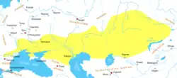 A map of the Cuman–Kipchak confederation in Eurasia, c. 1200