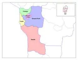 Donga [dɔ̃ŋ.ga] is one of the twelve departments of Benin; its capital is Djougou, the fourth largest city in the country. The department of Donga was created in 1999 when it was split off from Atakora Department. Donga is subdivided into five communes, each centered at one of the principal towns: Bassila, Copargo, Djougou Rural, Djougou Urban and Ouaké.