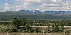 Dovrefjell[2] is a mountain range in Central Norway that forms a natural barrier between Eastern Norway and Trøndelag. The mountain range is located in Innlandet, Møre og Romsdal, and Trøndelag counties in Norway. As a result of its central location, its valleys and passes have been heavily trafficked during and probably preceding historical times. Several mountain inns were established in the Middle Ages to house pilgrims traveling through Dovrefjell to Trondheim, and there are even ruins of an old leper colony in the northern area of it.