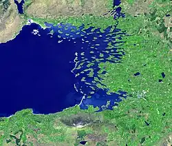 Semi-submerged or drowned drumlins can be observed where rising sea-levels flooded the low-lying areas in between drumlin ridges. The most notable example of this is Clew Bay in the west of Ireland, which contains hundreds of drumlin islands and islets. It was once a field of drumlins that was "drowned" following the Last Glacial Period.[24]