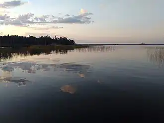 Duck Mountain[3] is a feature of the Manitoba Escarpment, and is a rise of forested land[4] between the Saskatchewan prairie and the Manitoba lowlands. It is about 200 m (660 ft) higher than the floor of the Assiniboine River valley to the west, and about 400 m (1,300 ft) higher than the Manitoba lowlands to the east. The landscape is rolling, with numerous ponds and creek channels. The soils are stony and are underlain with glacial till.