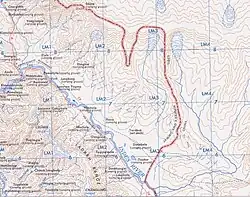 Tsaskur, alternately spelled as Tsoskur, is an Indian administered campsite located 2.5 miles (4.0 km) south west of Dumchele.[33] Areas between Dumchele and Demchok such as Nagtsang, Nakung, and Lungma-Serding, Skakjung are China administered territories.[34] Kegu Naro is a day's march from Dumchele.[9]