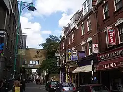 The continued strength of the City's financial services sector has seen many large office buildings erected around the City fringe, with indirect benefits accruing to local business. The area around Old Spitalfields Market has been redeveloped and Brick Lane, dubbed London's curry capital,[82] or Bangla Town,[83] has benefited from the City's success.