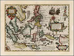The East Indies (or simply the Indies) is a term used in historical narratives of the Age of Discovery. The Indies broadly referred to various lands in the East or the Eastern Hemisphere, particularly the islands and mainlands found in and around the Indian Ocean by Portuguese explorers, soon after the Cape Route was discovered. In a narrow sense, the term was used to refer to the Malay Archipelago, which today comprises the Philippine Archipelago, Indonesian Archipelago, Borneo, and New Guinea. Historically, the term was used in the Age of Discovery to refer to the coasts of the landmasses comprising the Indian subcontinent and the Indochinese Peninsula along with the Malay Archipelago.[1][2][3]