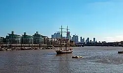 East London is the part of London, England, east of the ancient City of London and north of the River Thames as it begins to widen. East London developed as London's docklands and the primary industrial centre. The expansion of railways in the 19th century encouraged the eastward expansion of the East End of London and a proliferation of new suburbs. The industrial lands of East London are today an area of regeneration, which are well advanced in places such as Canary Wharf and ongoing elsewhere.